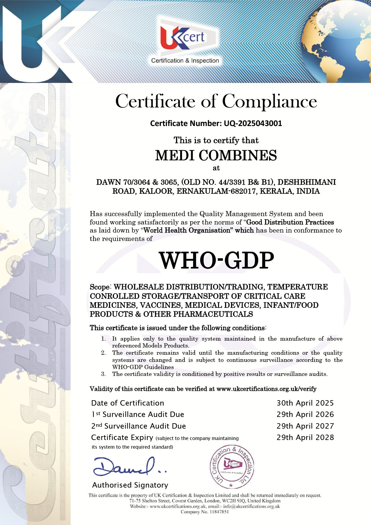 WHO GDP Certificate (Medi Combines)